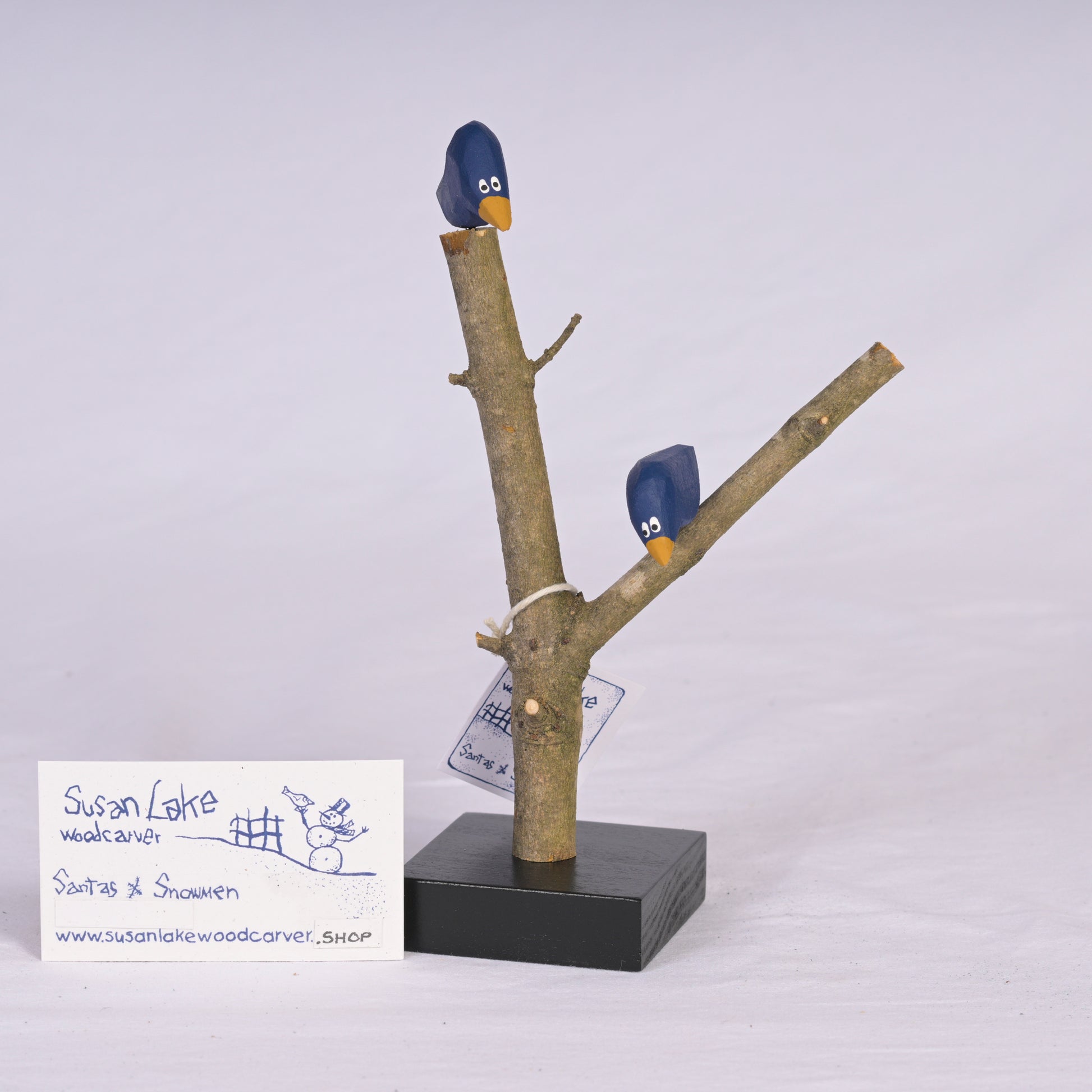 Introducing Mini Birds! This is 8” tall. Mini birds are carved and painted by ME and are sitting on a branch cut from my yard selected just for them. Perfect for a kitchen window! All of my bird were raised cage free…