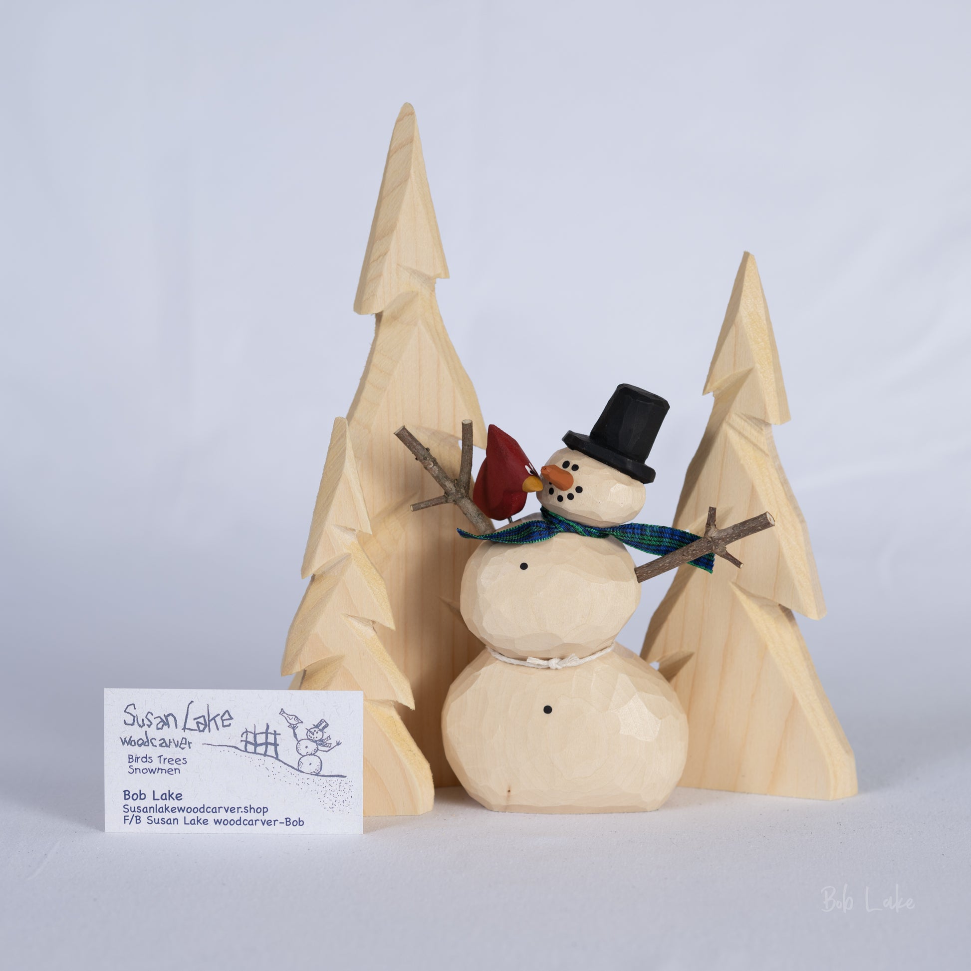 This Nekked Snowman bundle comes with 1 Nekked Snowman and includes 3 different size Nekked Trees, 6" 8" 10" This guy is approximately 6" tall. All Nekked Snowmen are completely hand carved and painted with invisible paint by ME in Newnan, Georgia. If you're wondering why the birds ain't nekked, it's because nekked birds can't fly!